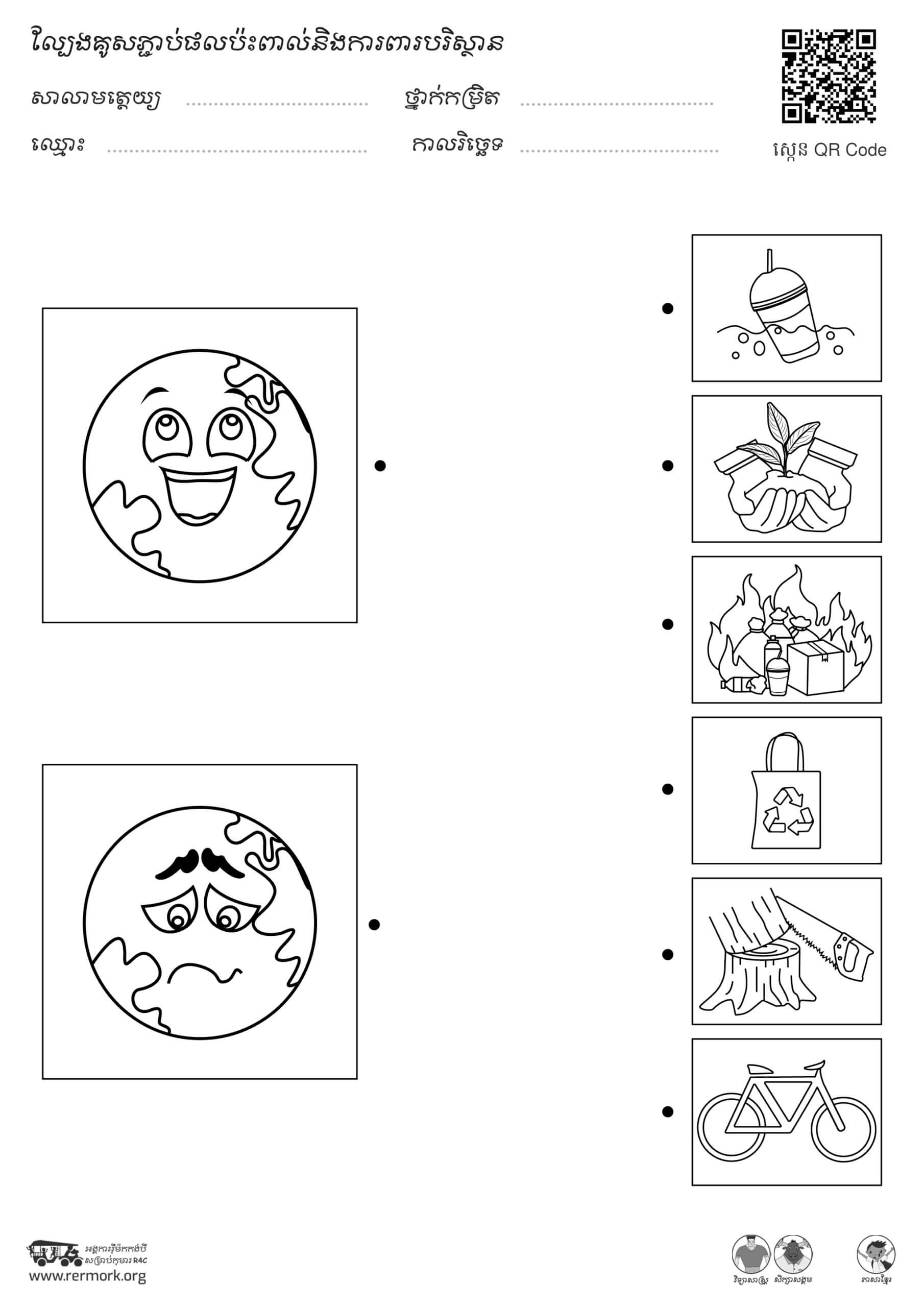 ល្បែងគូសភ្ជាប់ផលប៉ះពាលនិងការពារបរិស្ថាន (ពណ៌/សខ្មៅ)