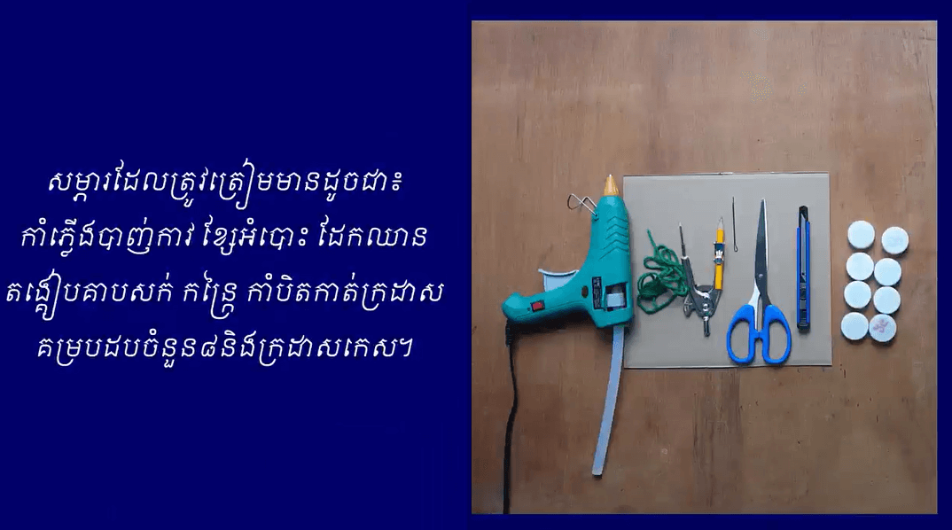 - ក្រដាសកេសគូរជារង្វង់ពីរដោយប្រើដែកឈាន
