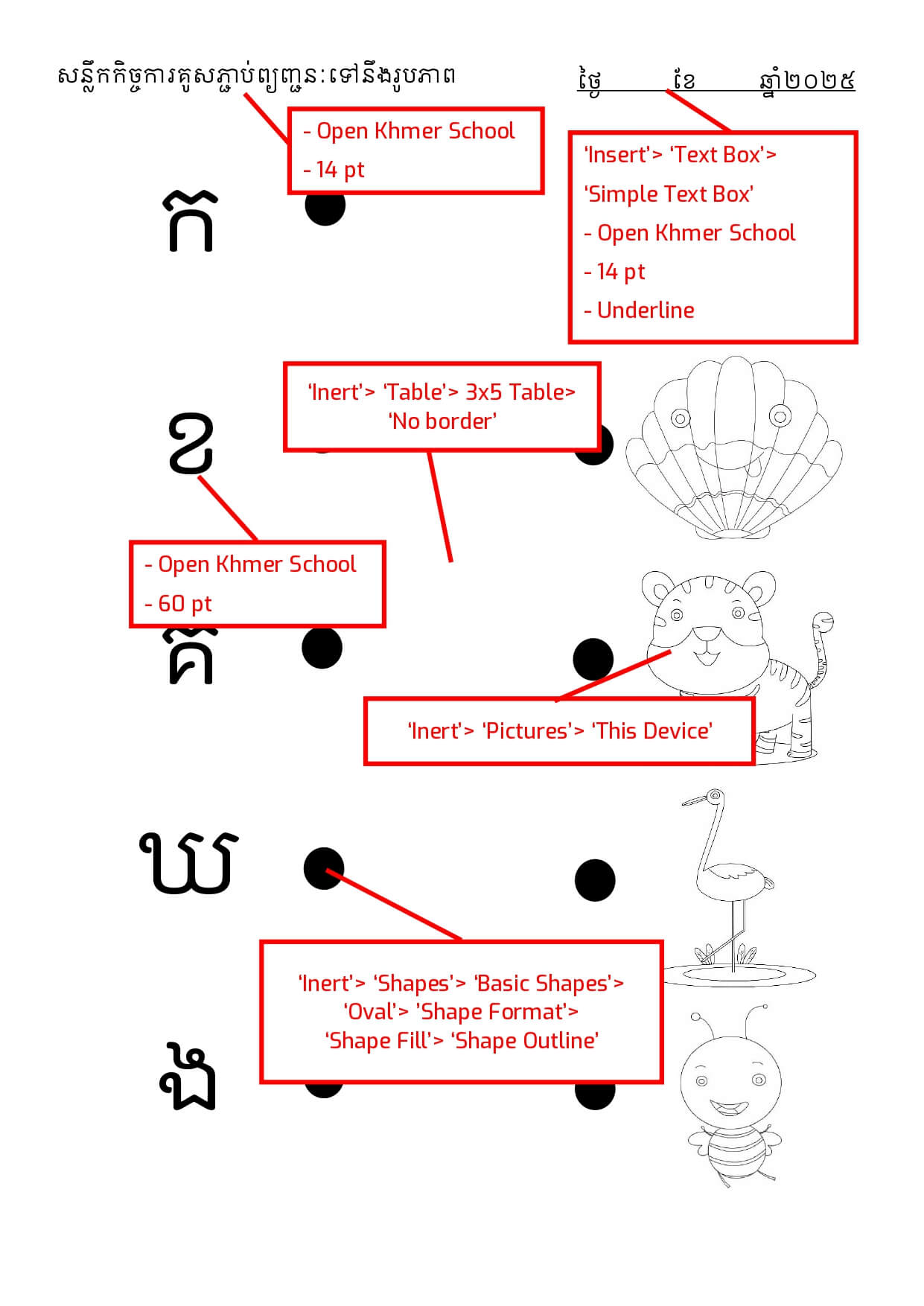 សន្លឹកកិច្ចការគូសភ្ជាប់ព្យញ្ជនៈទៅរូបភាព (ដោយប្រើប្រាស់កម្មវិធីMicrosoft Office Word)