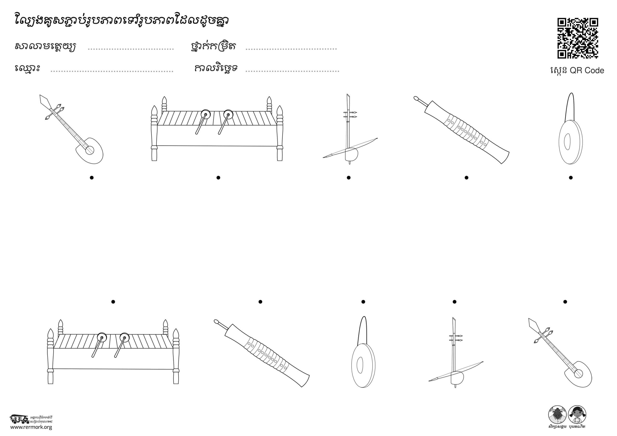 B13-PW-1-1-B_ល្បែងគូសភ្ជាប់រូបភាពទៅរូបភាពដែលដូចគ្នា_Matching-Musical-Instruments