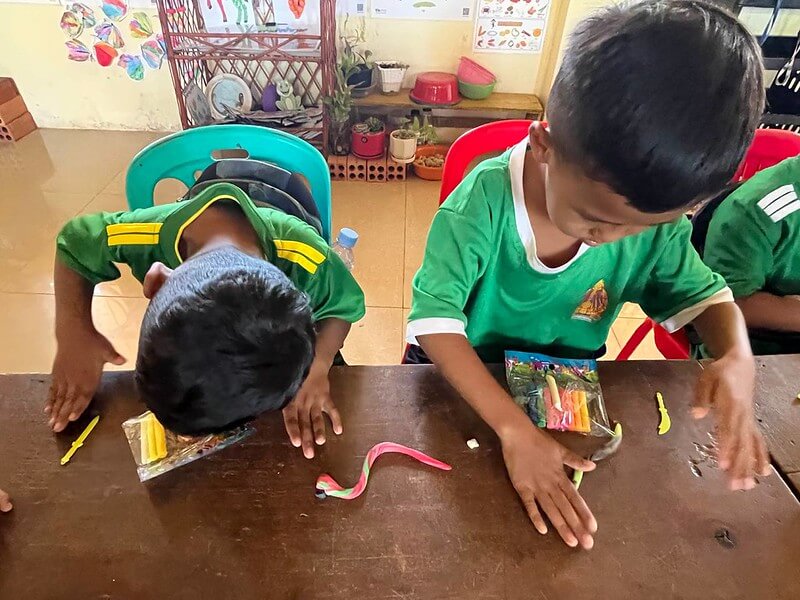 - នៅពេលដែលអាន និងប្រាប់ពួកគេរួចរាល់ហើយ ចាប់ផ្ដើមឱ្យដីឥដ្ឋទៅកុមារ និងឱ្យកុមារទាំងអស់ជ្រើសរើសពស់ណាមួយ និងធ្វើជាសត្វពស់នោះ ជាមួយដីឥដ្ឋដែលមានពណ៌ទាំងនោះជាការស្រេច។