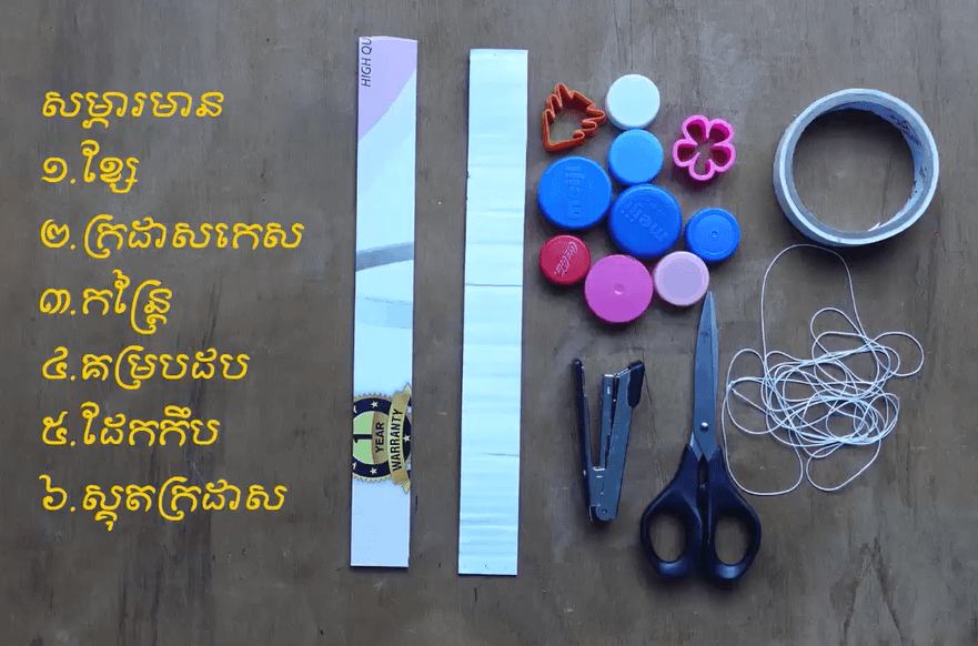 កន្ត្រៃ, ខ្សែ, គម្របដប, ស្កុត, ដែកកឹប, ក្រដាសកេស