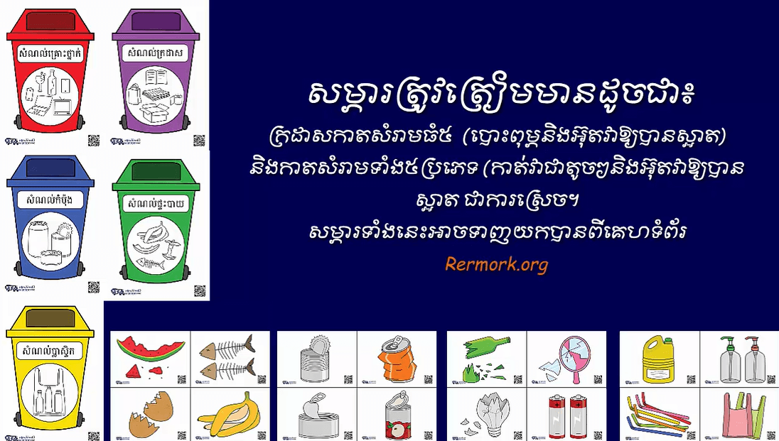 - និងប្រាប់កាត់តូចៗដូចគ្នាដែរ ប្រាប់កុមារថាសំរាមណា ត្រូវនៅក្នុងធុងសំរាមណា ជាដើម…។