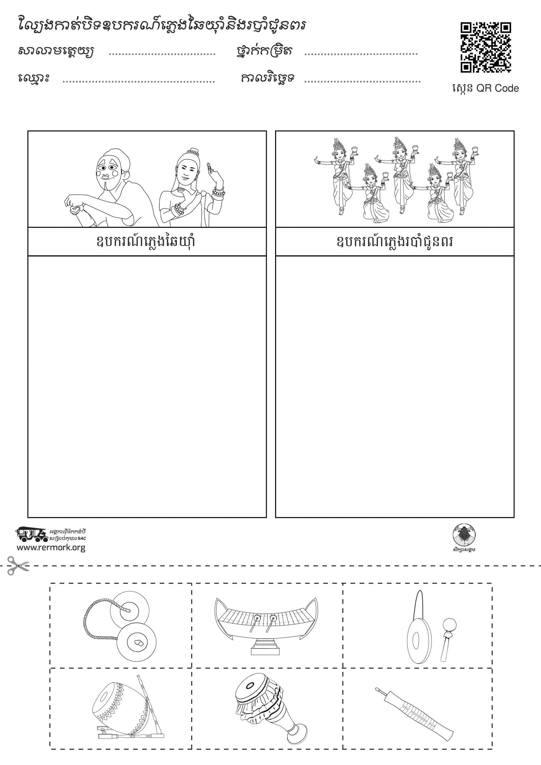 ល្បែងកាត់បិទឧបករណ៍ភ្លេងឆៃយ៉ាំនិងរបាំជូនពរ (សខ្មៅ/ពណ៌)