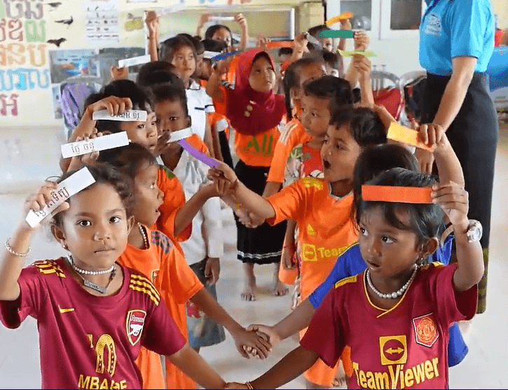 សកម្មភាព ៖ ល្បែង ត្រីនៅក្នុងសមុទ្រចិត្តចលភាពបំណិនចលកតូច (ការហ្វឹកហាត់បង្កើនកម្លាំង សម្របសម្រួលសាច់ដុំដៃ និងភ្នែកសាច់ដុំភ្នែក)។បំណិនចលកធំ (ការហ្វឹកហាត់បង្កើនកម្លាំង សម្របសម្រួលសាច់ដុំតូច និងសាច់ដុំធំ)។ បុរេគណិត ទំហំ និងពណ៌ (ចំណាត់ក្រុម និងលំដាប់លំដោយ)គោលបំណង ៖(ចិត្តចលភាព) ប្រាប់ពីររបៀបធ្វើចលនាដៃតាមទម្រង់ផ្សេងៗដោយការធ្វើអ្វីមួយ ឬលេងល្បែង។ បង្ហាញពីរបៀបធ្វើសកម្មភាពទៅតាមទម្រង់ផ្សេងៗនៃសកម្មភាពរួមមួយ។(បុរេគណិត) កុមារអាចចេះរៀបវត្ថុតាមលំដាប់ ទំហំ ប្រភេទ និងពណ៌។កម្រិតសិក្សា ៖ ទាប មធ្យម ខ្ពស់។ រយៈពេល ៖ ៣០ នាទី ឧបករណ៍ ៖ ត្រូវមានកាតពណ៌ (កាត១, កាត២, កាត៣) សម្រាប់ក្មេងៗទាំងអស់។ ជ្រើសរើសកន្លែងដែលមានទីធ្លាធំទូលាយសម្រាប់ធ្វើជាសមុទ្រ។ កន្លែងដែលជ្រើសរើសត្រូវមានខ្សែបន្ទាត់២សងខាង។ ការរៀបចំ ៖ អ៊ុតក្រដាសកាតពណ៌យ៉ាងហោចណាស់ ៦ពណ៌ផ្សេងគ្នា។ កាត់វាទៅជា ៨សន្លឹកតូចៗ និងអ៊ុតវាឱ្យបានស្អាត។ សេក្ដីណែនាំ៖ ការប្រែប្រួល៖ ល្បែងនេះអាចលេងជាមួយ ឬប្រើកាតសត្វ ផ្លែឈើ បន្លែ និងថ្ងៃនៃសប្តាហ៍បាន។