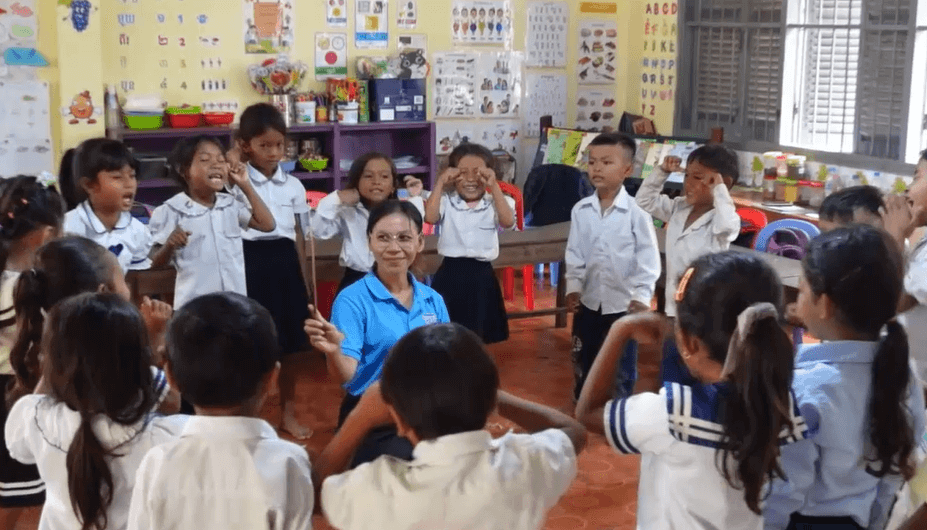ល្បែងទស្សន៍ទាយកាយវិការតាមប្រធានបទ កម្មវិធីសិក្សា៖ចិត្តចលភាពបំណិនចលករធំ(ការហ្វឹកហាត់បង្កើនកម្លាំង និងការសម្របសម្រួលនៃចលនាសាច់ដុំតូច និងសាច់ដុំធំ) វិទ្យាសាស្រ្ត៖ អាហាររូបត្ថម្ភ (ចំណោះដឹងមូលដ្ឋានអំពីអាហារ និងអាហាររូបត្ថម្ភ៖ ប្រាប់បានពីឈ្មោះបន្លែផ្លែឈើ និងអាហារបីក្រុម) ការរស់នៅប្រចាំថ្ងៃ (ការស្វែងយល់ដោយសង្កេតប្រាប់បានពីឈ្មោះសត្វចិញ្ចឹម សត្វព្រៃ សត្វស្លាប ឫលើសពីនេះទៀត) (លក្ខណៈមេឃ និងអកាសធាតុ)ប្រតិបត្តិដោយសុវត្តិភាព (ការយល់ដឹងពីការប្រតិបត្តិខ្លួនដើម្បីសុវត្ថិភាព)អនាម័យ (ទម្លាប់រស់នៅមានអនាម័យក្នុងគ្រួសារ និងសង្គម) សិក្សាសង្គម៖ការយល់ដឹងពីខ្លួនឯង(ស្គាល់ពីអារម្មណ៍មួយចំនួនប្រាប់បានពីអារម្មណ៌ និងមូលហេតុដែលធ្វើឱ្យខ្លួនឯងសប្បាយចិត្ត ត្រេកអរ ភ័យខ្លាចនៅពេលដែលជួបនូងព្រឹត្តិការណ៍ណាមួយ) គោលបំណង ៖(ចិត្តចលភាព) ប្រាប់ពីររបៀបធ្វើចលនាដៃតាមទម្រង់ផ្សេងៗដោយការធ្វើអ្វីមួយ ឬលេងល្បែង។ប្រាប់បានពីវិធីដើរ លូន រត់ លោត វា ចុះ ឡើង បោះ តោងឡើង គប់ រមៀល បង្វិលខ្លួន រុញ និងទាញ ទៅតាមគោលដៅ និងចម្ងាយដែលបានកំណត់)។ (វិទ្យាសាស្រ្ត) ចូលចិត្តញុំាបន្លែ ផ្លែឈើ និងអារហារសំបូរជីវជាតិសហការស្តាប់យោបល់ និងឯកភាព គំនិត ដើម្បីសម្រេចការងាជាក្រុម។ ប្រយ័ត្ន និងការពារខ្លួននៅពេលមានបាតុភូតធម្មជាតិ។ចៀសវាងសកម្មភាពមួយចំនួនដែលនាំឱ្យមានគ្រោះថ្នាក់ ការលេងតាមចិញ្ចើមថ្នល់។ទម្លាប់ល្អក្នុងការធ្វើអនាម័យខ្លួនឯងជាប្រចាំដោយការហូបស្អាត ផឹកស្អាត និងរស់នៅស្អាត។ (សិក្សាសង្គម) ទំនាក់ទំនងល្អទាំងកាយវិការ និងសម្តីប្រកបដោយក្តីស្រលាញ់ជាមួយមនុស្សនៅជុំវិញខ្លួន។ រយៈពេល ៖ ៣០ […]